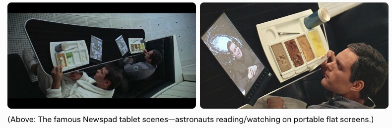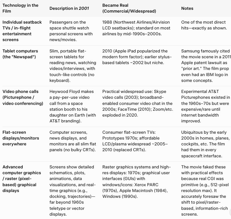 They did predict seatback TVs in planes, skype video calls, tablet computers and more. Samsung used the 2001 tablet computers shown in 2001 in the trial where Apple tried to sue Samsung for making tablet computers like the iPad. The movie was remarkably accurate on consumer tech interfaces.