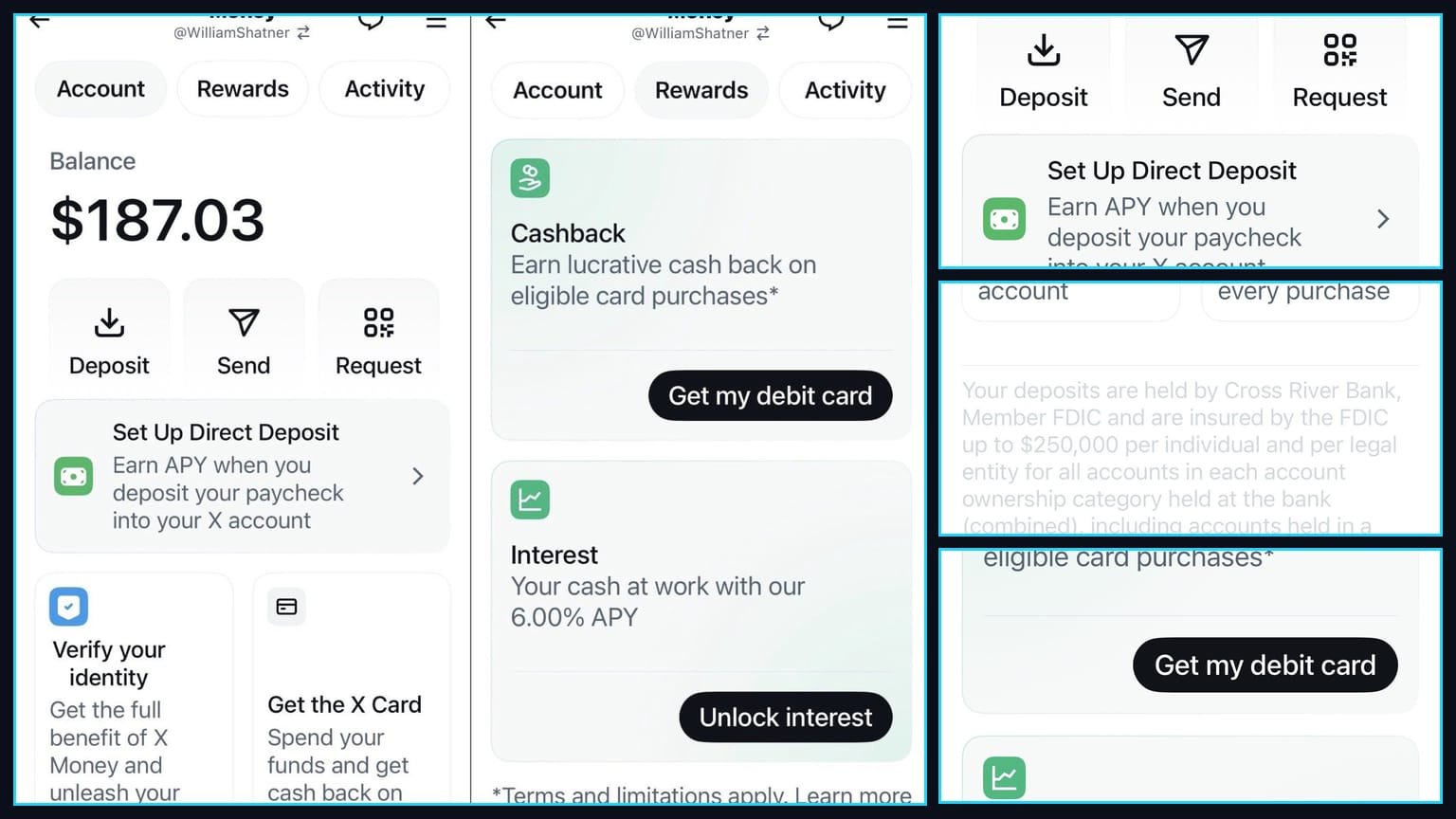 William Shatner, Captain Kirk, gave screenshots of the live X Money UI. X Money (also called X Payments or the payments/wallet feature inside the X app) is Elon Musk’s long-planned move to turn X into a super app like WeChat. Handling P2P transfers, wallets, debit cards, bills, shopping, creator payouts, and eventually banking/investing/crypto all in one place tied to your X profile/social graph.