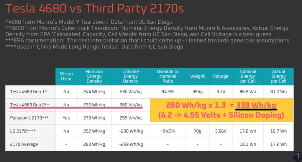 Charging to 4.55 V (vs. conventional 4.2 V limit) yields 21.8% more energy (317 Wh/kg usable vs. ~260 Wh/kg in today’s Tesla 4680 cells).