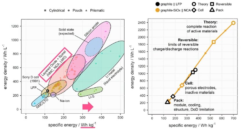 The paper projects ~340 Wh/kg long-term with minor anode tweaks (small silicon addition).