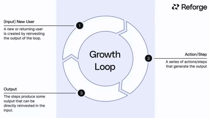Fast-growing companies succeed via growth loops (compounding flywheels, e.g., user action → output → new input) rather than linear funnels.