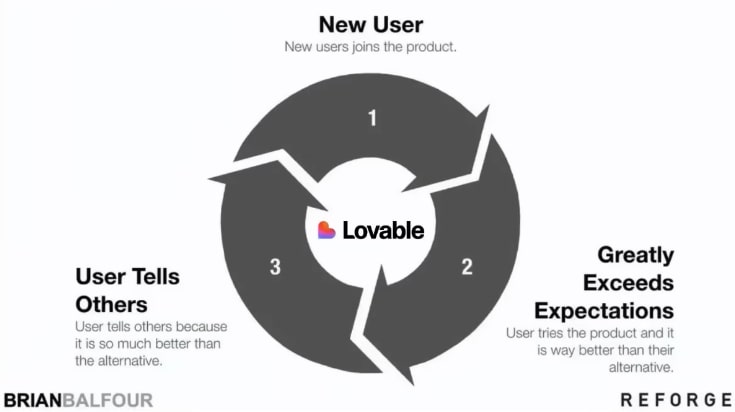 Lovable (10-month-old AI coding platform) grew word-of-mouth loop from magical first experiences fuels current growth.