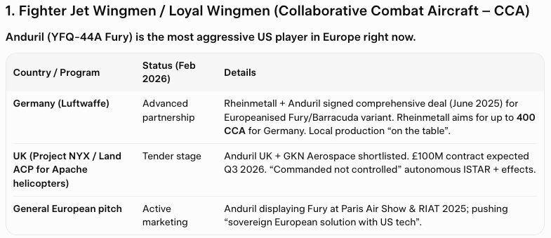 No country has placed firm multi-hundred orders yet. Europe wants US autonomy software + performance now but with 40–60 % local workshare. Procurement is moving fast via bilateral deals and urgent operational requirements rather than slow multinational programs.