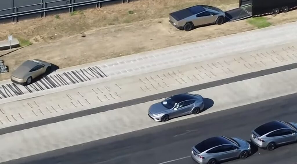 Tesla is test driving the cybercab in Fremont. Various drone footage from youtube.