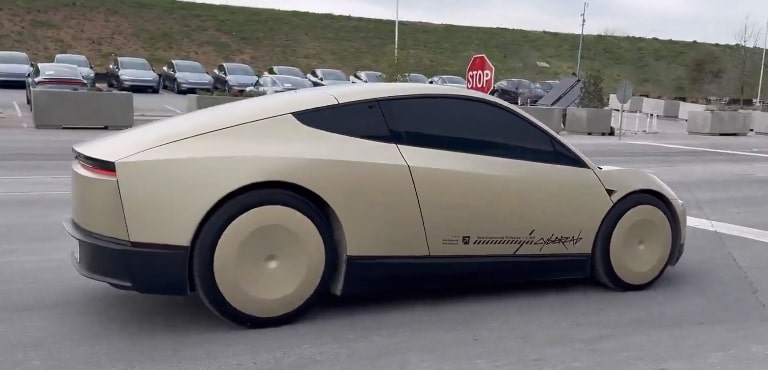 Stopped by Giga Texas this afternoon and there was a Cybercab test vehicle driving on the S River Road and to the W side.